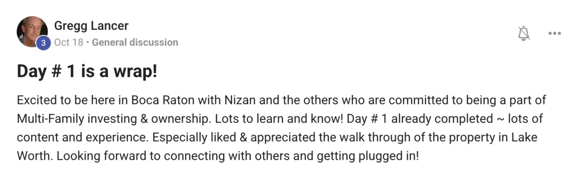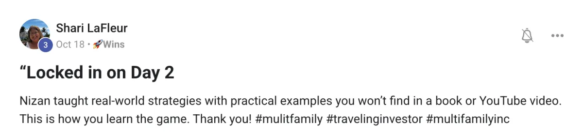 Whether you're brand new to multifamily or already active in the space, if you attend everyday and don't leave with complete clarity on your path forward and a specific action plan, we'll refund 100% of your investment.